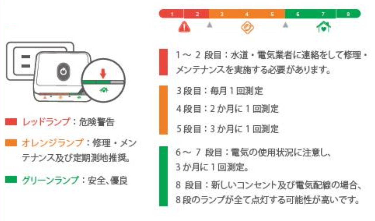 ①測定時、各コンセントはアイドル状態にしてください。通常コンセント/延長コードに挿し込まれているプラグ、電子機器及びデバイスを全て抜き取ってください。